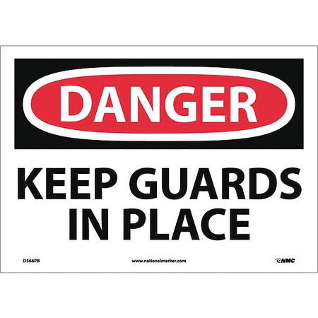 NMC D566PB OSHA Sign, Legend "DANGER - KEEP GUARDS IN PLACE", 14" Length x 10" Height, Pressure Sensitive Adhesive Vinyl, Black/Red on White