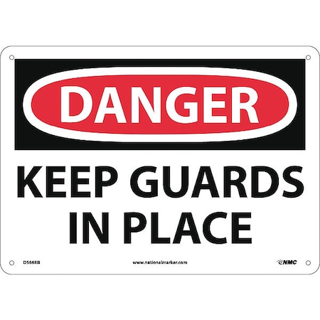 NMC D566RB OSHA Sign, Legend "DANGER - KEEP GUARDS IN PLACE", 14" Length x 10" Height, Rigid Plastic, Black/Red on White