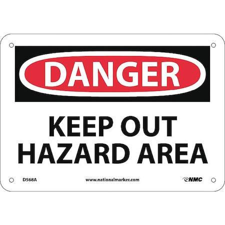 NMC D568A DANGER - KEEP OUT HAZARD AREA Sign - 10 in. x 7 in. Aluminum Danger Sign, Black/White Text on White/Red Base