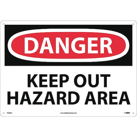 NMC D568AC DANGER - KEEP OUT HAZARD AREA Sign - 20 in. x 14 in. Aluminum Danger Sign, Black/White Text on White/Red Base