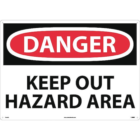 NMC D568RD OSHA Sign, Legend "DANGER - KEEP OUT HAZARD AREA", 28" Length x 20" Height, Rigid Plastic, Black/Red on White