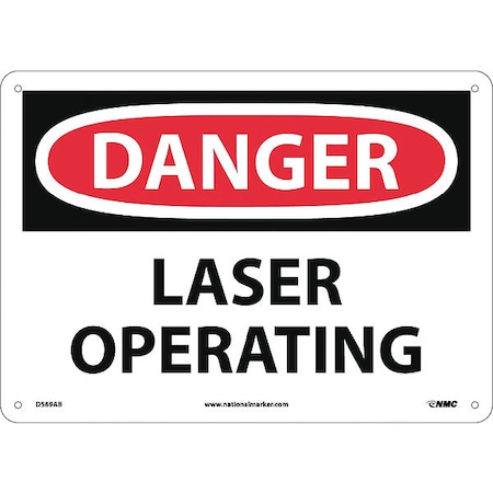 NMC D569AB OSHA Sign, Legend "DANGER - LASER OPERATING", 14" Length x 10" Height, 0.040 Aluminum, Black/Red on White