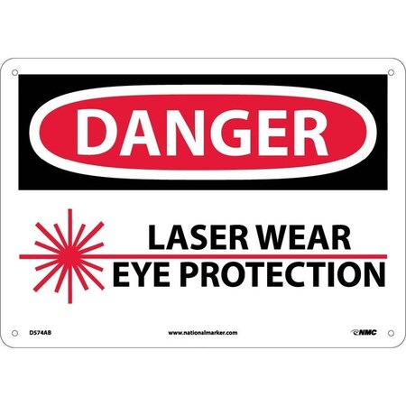 NMC D574RB OSHA Sign, Legend "DANGER - LASER WEAR EYE PROTECTION" with Graphic, 14" Length x 10" Height, Rigid Plastic, Black/Red on White