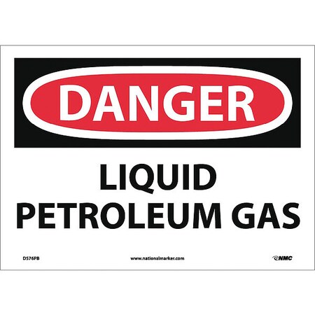 NMC D576PB OSHA Sign, Legend "DANGER - LIQUID PETROLEUM GAS", 14" Length x 10" Height, Pressure Sensitive Vinyl, Black/Red on White