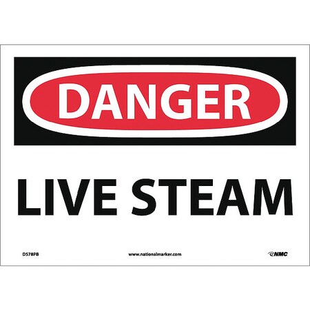 NMC D578PB OSHA Sign, Legend "DANGER - LIVE STEAM", 14" Length x 10" Height, Pressure Sensitive Vinyl, Black/Red on White
