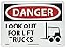 | Feature | Header "DANGER" and Legend "LOOK OUT FOR LIFT TRUCKS" with Graphic |