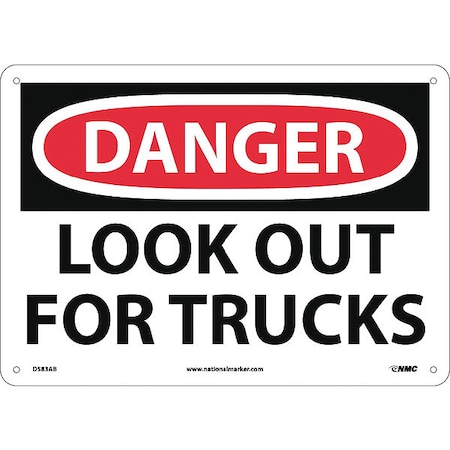 NMC D583AB OSHA Sign, Legend "DANGER - LOOK OUT FOR TRUCKS", 14" Length x 10" Height, Aluminum, Black/Red on White