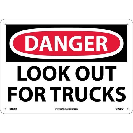 NMC D583RB OSHA Sign, Legend "DANGER - LOOK OUT FOR TRUCKS", 14" Length x 10" Height, Rigid Plastic, Black/Red on White