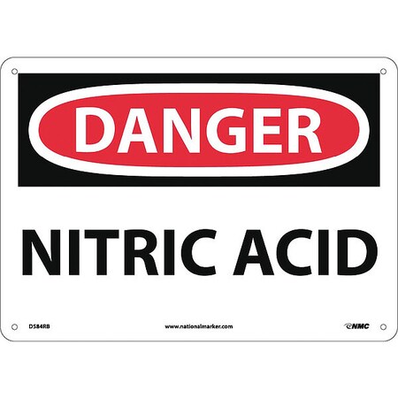NMC D584RB OSHA Sign, Legend "DANGER - NITRIC ACID", 14" Length x 10" Height, Rigid Plastic, Black/Red on White