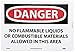 | Feature | Header "DANGER" and Legend "NO FLAMMABLE LIQUIDS OR COMBUSTIBLE MATERIALS ALLOWED IN THIS AREA" |