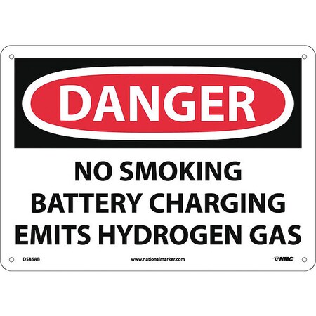 NMC D586AB OSHA Sign, Legend "DANGER - No Smoking Battery Charging Emits Hydrogen Gas", 14" Length x 10" Height, Aluminum, Black/Red on White
