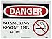 - Product Specifications: the 0.004 in. thick PS Vinyl danger sign has 14 in. the width and 10 in. height. This rectangular signage features Red/Black text on the White base
