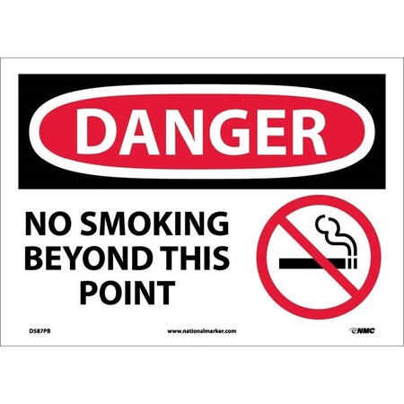 NMC D587PB DANGER - NO SMOKING BEYOND THIS POINT Sign - 14 in. x 10 in., Red/Black Text on White, PS Vinyl Danger Sign with Graphics