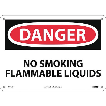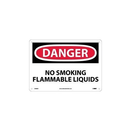 NMC D588AB OSHA Sign, Legend "DANGER - NO SMOKING FLAMMABLE LIQUIDS", 14" Length x 10" Height, Aluminum, Black/Red on White