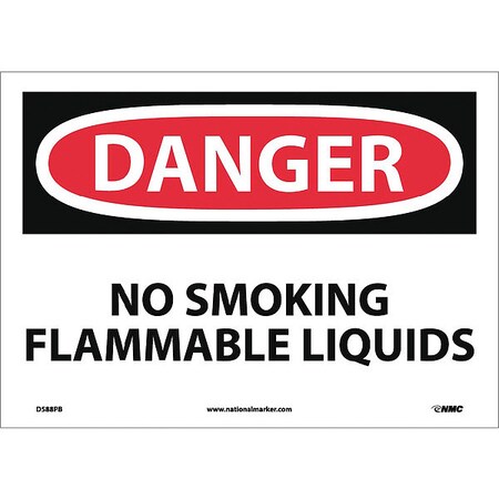 NMC D588PB OSHA Sign, Legend "DANGER - NO SMOKING FLAMMABLE LIQUIDS", 14" Length x 10" Height, Pressure Sensitive Vinyl, Black/Red on White
