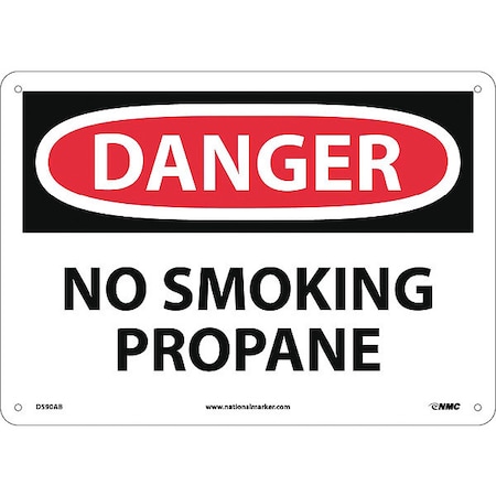 NMC D590AB OSHA Sign, Legend "DANGER - NO SMOKING PROPANE", 14" Length x 10" Height, Aluminum, Black/Red on White