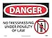 | Feature | Header "DANGER" and Legend "NO TRESPASSING UNDER PENALTY OF LAW" with Graphic |