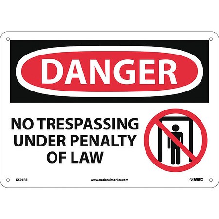 NMC D591RB DANGER - NO TRESPASSING UNDER PENALTY OF LAW Sign - 14 in. x 10 in. Rigid Plastic Danger Sign with Graphics, Black/White on White/Red