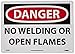 - Header "DANGER" and Legend "NO WELDING OR OPEN FLAMES"