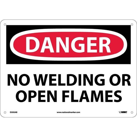 NMC D592RB OSHA Sign, Legend "DANGER - NO WELDING OR OPEN FLAMES", 14" Length x 10" Height, Rigid Plastic, Black/Red on White