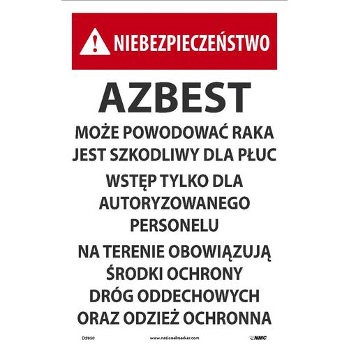 Polish Danger Asbestos Paper Sign, Pk100