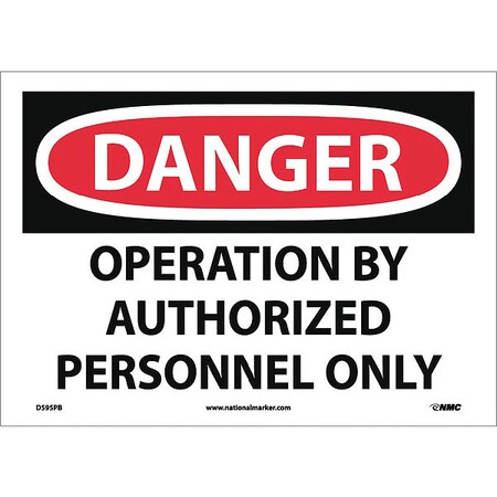 NMC D595AB OSHA Sign, Legend "DANGER - OPERATION BY AUTHORIZED PERSONNEL ONLY", 14" Length x 10" Height, Aluminum, Black/Red on White