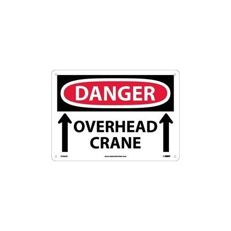 NMC D596RB OSHA Sign, Legend "DANGER - OVERHEAD CRANE" with Graphic, 14" Length x 10" Height, Rigid Plastic, Black/Red on White