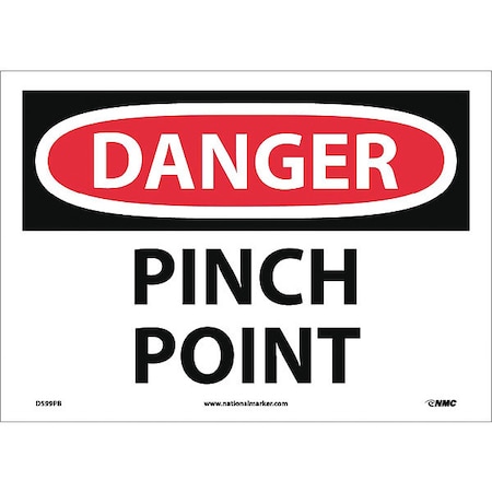 NMC D599PB OSHA Sign, Legend "DANGER - PINCH POINT", 14" Length x 10" Height, Pressure Sensitive Vinyl, Black/Red on White