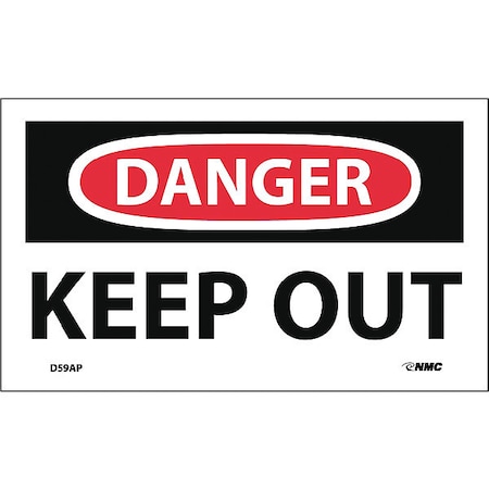 NMC D59AP OSHA Sign, Legend "DANGER - KEEP OUT", 5" Length x 3" Height, Pressure Sensitive Adhesive Vinyl, Black/Red on White (Pack of 5)