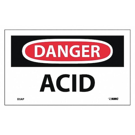 NMC D5AP OSHA Sign, Legend "DANGER - ACID", 5" Length x 3" Height, Pressure Sensitive Adhesive Vinyl, Black/Red on White (Pack of 5)
