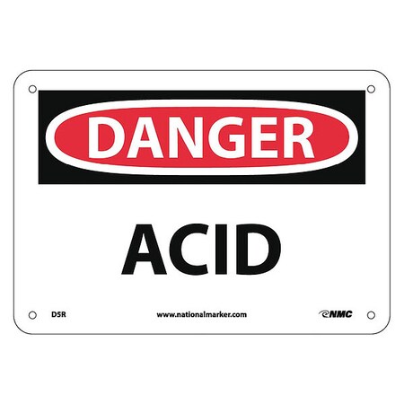 NMC D5R OSHA Sign, Legend "DANGER - ACID", 10" Length x 7" Height, Rigid Plastic, Red/Black on White