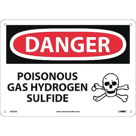 NMC D602AB OSHA Sign, Legend "DANGER - POISONOUS GAS HYDROGEN SULFIDE", 14" Length x 10" Height, Aluminum, Black/Red on White