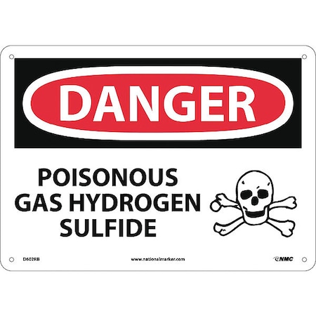 NMC D602RB OSHA Sign, Legend "DANGER - POISONOUS GAS HYDROGEN SULFIDE", 14" Length x 10" Height, Rigid Plastic, Black/Red on White