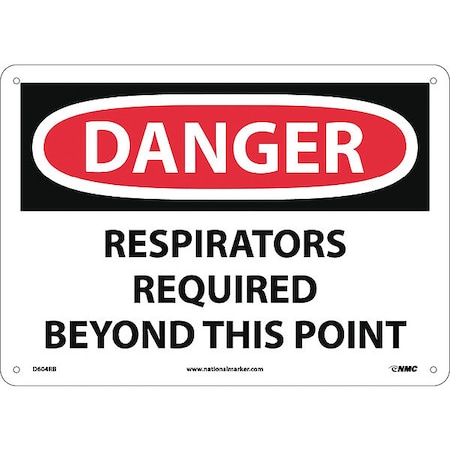 NMC D604RB DANGER - RESPIRATORS REQUIRED BEYOND THIS POINT - 14 in. x 10 in. Rigid Plastic Danger Sign with White/Black Text on Red/White Base