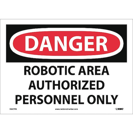 NMC D607PB OSHA Sign, Legend "DANGER - ROBOTIC AREA AUTHORIZED PERSONNEL ONLY", 14" Length x 10" Height, Pressure Sensitive Vinyl, Black/Red on White
