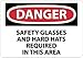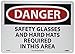 | Feature | Header "DANGER" and legend "SAFETY GLASSES AND HARD HATS REQUIRED IN THIS AREA" |
