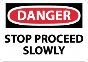 - Header "DANGER" and legend "STOP PROCEED SLOWLY"