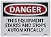 - Header "DANGER" and legend "THIS EQUIPMENT STARTS AND STOPS AUTOMATICALLY"