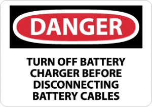 | Feature | Header "DANGER" and legend "TURN OFF BATTERY CHARGER BEFORE DISCONNECTING BATTERY CABLES" |