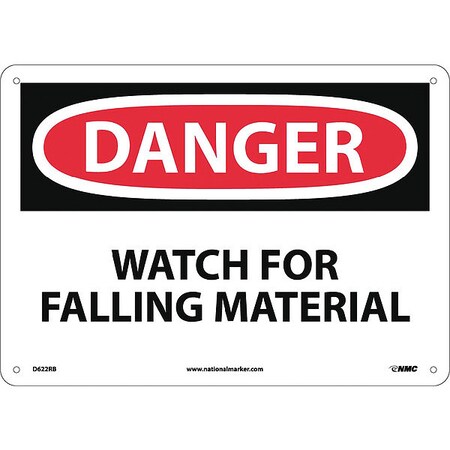 NMC D622RB OSHA Sign, Legend "DANGER - WATCH FOR FALLING MATERIAL", 14" Length x 10" Height, Rigid Plastic, Black/Red on White