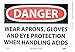- Specifications: the rectangular vinyl danger sign is OSHA compliant and is 14 in. wide, 10 in. high and 0.004 in. thick. The sign has white text on red base and black text on white base. It is also graffiti proof and resistant to UV and chemicals