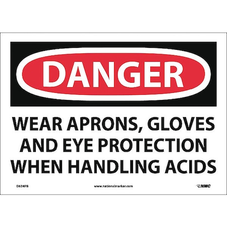 NMC D624PB OSHA Sign, Legend "DANGER - WEAR APRONS GLOVES AND EYE PROTECTION WHEN HANDLING ACIDS" 14" Length x 10" Height, Pressure Sensitive Vinyl, Black/Red on White
