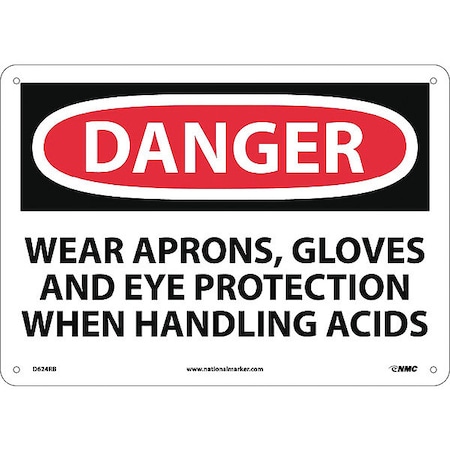 NMC D624RB OSHA Sign, Legend "DANGER - WEAR APRONS GLOVES AND EYE PROTECTION WHEN HANDLING ACIDS" 14" Length x 10" Height, Rigid Plastic, Black/Red on White