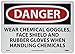 | Feature | Header "DANGER" and legend "WEAR CHEMICAL GOGGLES, FACE SHIELD AND RUBBER GLOVES WHEN HANDLING CHEMICALS" |