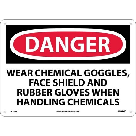 NMC D625AB OSHA Sign, Legend "DANGER - WEAR CHEMICAL GOGGLES, FACE SHIELD AND...", 14" Length x 10" Height, Aluminum, Black/Red on White