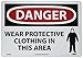 - Header "DANGER" and legend "WEAR PROTECTIVE CLOTHING IN THIS AREA" with Graphic