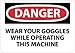 - Header "DANGER" and legend "WEAR YOUR GOGGLES WHILE OPERATING THIS MACHINE"