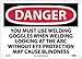 | Feature | Header "DANGER" and legend "YOU MUST USE WELDING GOGGLES WHEN WELDING LOOKING AT THE ARC WITHOUT EYE PROTECTION MAY CAUSE BLINDNESS" |