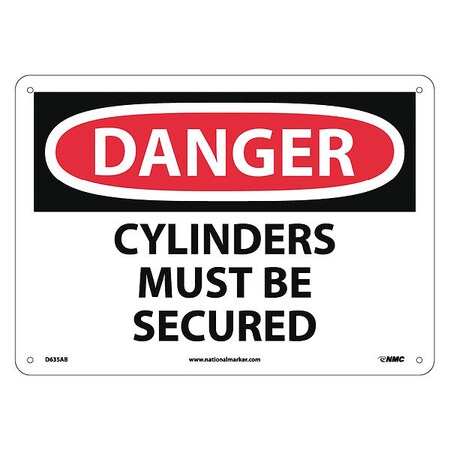 NMC D635AB OSHA Sign, Legend "DANGER - CYLINDERS MUST BE SECURED", 14" Length x 10" Height, Aluminum, Black on White