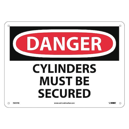 NMC D635RB OSHA Sign, Legend "DANGER - CYLINDERS MUST BE SECURED", 14" Length x 10" Height, Rigid Plastic, Black on White